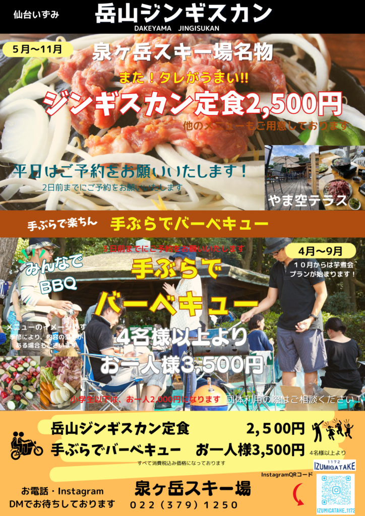 泉ヶ岳名物 岳山ジンギスカン・手ぶらでBBQ